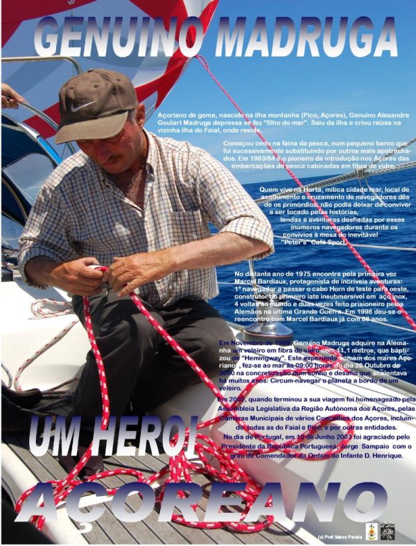 Natural do Pico e residente no Faial, onde foi sempre o mais inovador e criativo dos mestres de pesca, Genuíno Madruga, navegando sozinho, num veleiro de série de 11 metros, já deu neste momento uma volta e meia ao mundo no seu “Hemingway”.